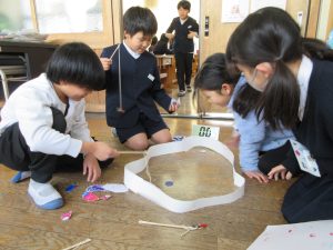 皆それぞれが作ったおもちゃで遊びました。今まで理科の授業で学習したことを活かした遊びになっていました。とても楽しく3年生最後の理科を終えることができました。