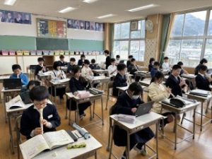 今日の音楽の時間は、リコーダーの演奏テストを行いました。曲目は、軽快なリズムが楽しい「茶色のこびん」です。
