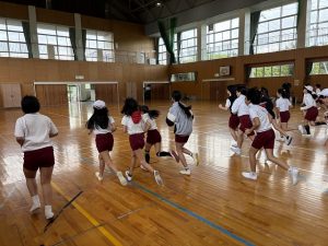 今日は、持久力を測るシャトルランに挑みました。 次第に速くなるリズムに必死に食らいつき、目標回数を目指して激走する6年生。走り続ける仲間へ自然と拍手や声援が送られるなど、学年の一体感も感じられる時間となりました。