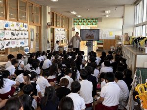 今日は図書館司書の方々に来ていただき、ブックトークを行いました。司書さんの本の紹介により、「読んでみたい!」という気持ちがかきたてられたようです。本を読む児童が増えたように感じます。