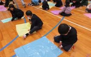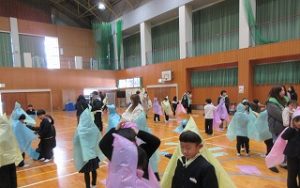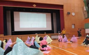 1月22日(木)、3時間目のオープンスクールにて、1年生が体育館で「防災学習」を行いました。 防災士の方から地震についてのお話を聞きました。今回は、もしもの時に役立つ「ビニール袋で作るかっぱ」に挑戦しました。お家の方と一緒に、袋を切ったり形を整えたりして、一生懸命に作りました。 自分たちの手で作ったかっぱを身につけ、防災への意識がより一層高まった1時間となりました。ご協力いただいた保護者の皆様、ありがとうございました。
